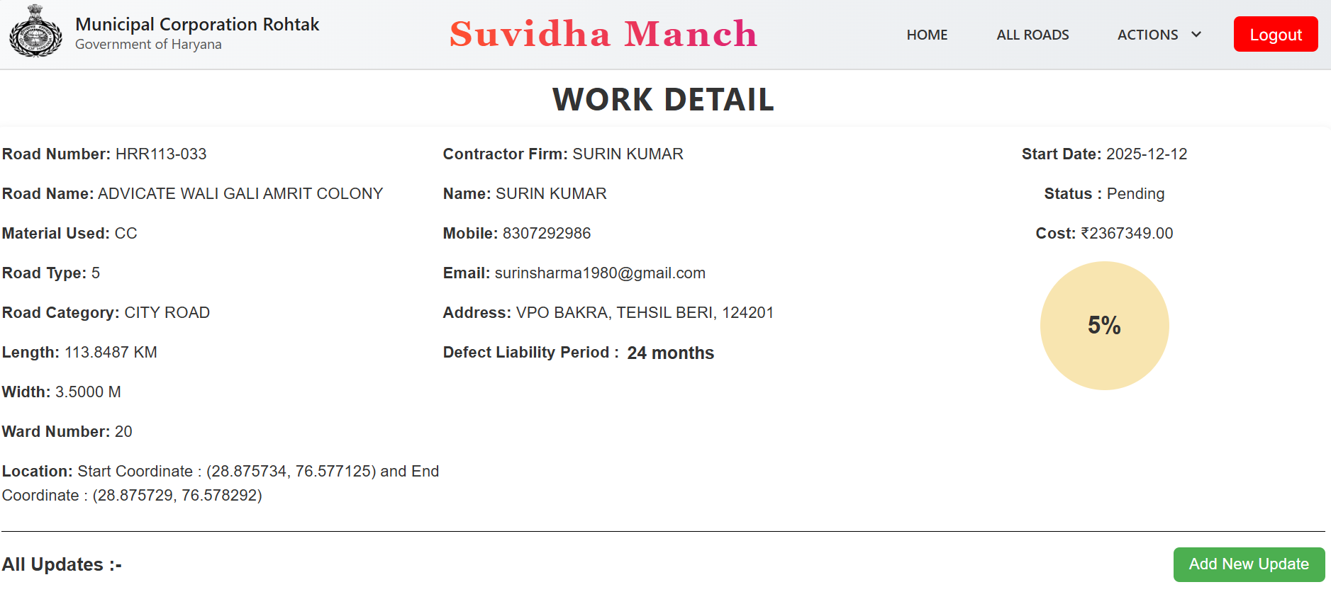 - Roads, Contractors, Infra Works CRUD APIs
